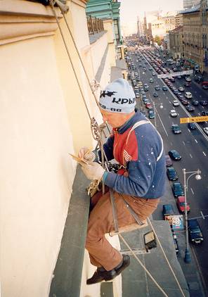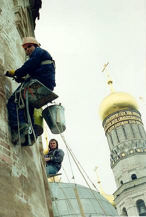 Анатолий и Пётр реставрируют барабан Архангельского собора в Кремле (середина 90-х годов) |