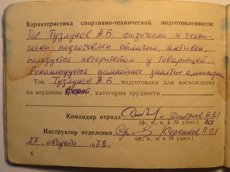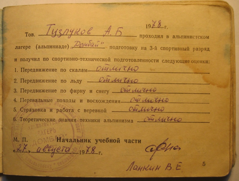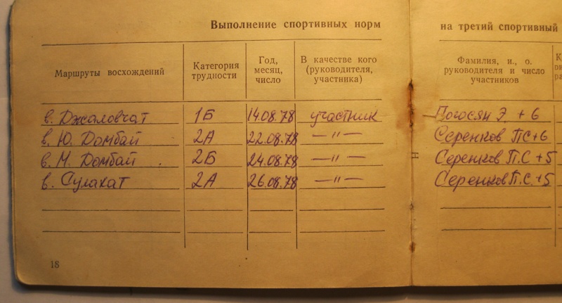 Ещё хочу сделать отступление на эпизод с песней. Так как именно этот эпизод помог мне пусть "стиснув зубы", доходить свои "двойки". В соседних домиках, назвать их коттеджами "язык не поворачивается", жили разрядники. Мы, как начинающие, жили в больших брезентовых палатках, с деревянными полами, спали на пружинных матрасах, но никакой дискриминации не ощущали. Нам, если честно, тогда вообще "было море по колено". Мы с лёгкой завистью и ревностью посматривали на разрядников. Одежда, экипировка, скально -ледовый инструмент, некоторая вольность или свобода при подготовке к выходам в высокогорную зону. Мне бросалась в глаза каждая мелочь.