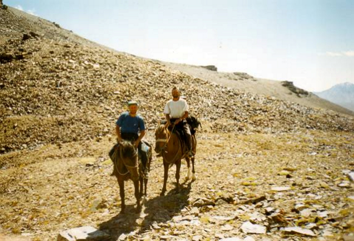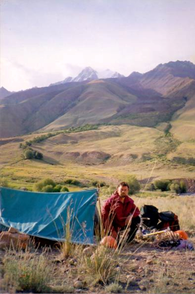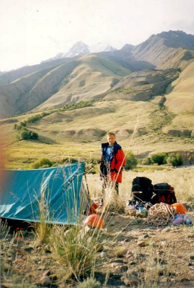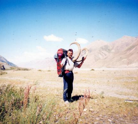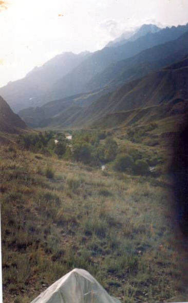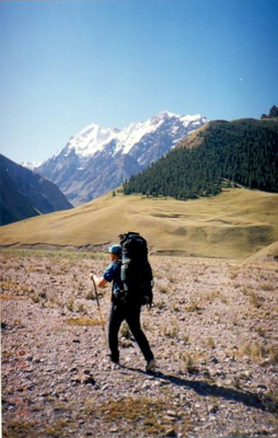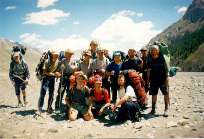 Расклад по времени был на месяц. Сюда входило: тренировочное восхождение на малопримечательную для альпинистов вершину высотой чуть выше 4700 метров (ввиду ее удаленности от основных потоков миграции к восхождениям на вершины "удовлетворения собственных амбиций") в долине реки Каинды, возвращение пешком, а это 34 км, в альпинистский лагерь Мойда-Адыр в долине реки Иныльчек, переход по долине р. Иныльчек от турбазы Ат-Джайлоо до начала ледника Иныльчек по руслу реки, иногда вброд. Это где-то 17 км по бездорожью, потом сам ледник 67 км с общим перепадом высоты от 2700 м до 4100 м, это "вишенка на торте"; восхождение на Хан-Тенгри, 7010 м, сколько "вытянем", обязательное возвращение к семьям и родителям, простите, я хотел сказать, в базовый лагерь Мойда-Адыр. Отдых, куда же без него. И марш-бросок через хребет Иныльчек-Тау (около 4000 м) в среднюю часть долины р. Каинды, (около 3000 м), в бывший поселок горняков и геологов Ташкоро, в котором когда-то после института я начинал работать. Чтобы до него добраться надо было преодолеть от места старта до выхода на гребень хребта - около 1500 м. Потом спуск в долину реки, потом около 5 км по грунтовой дороге до поселка Ташкоро. Потом тем же "Макаром" надо будет отмотать в обратную сторону.