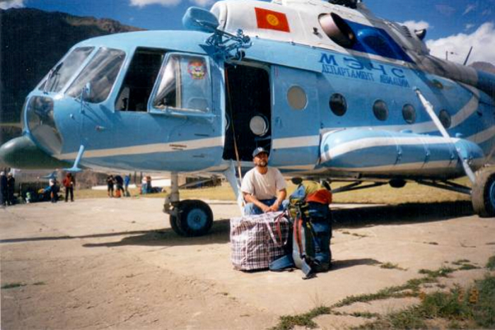Вертолет, который увозит нас с ледника Звёздочка на базу в Мойда-Адыр.