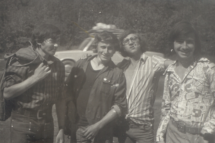Руководитель, Юра Машненков, вполне себе такой бравый, в неполных двадцать уже с бородкой, неистребимым оптимизмом и богатым опытом горных походов 2-й категории трудности в количестве то ли двух, то ли аж трёх штук. Очаровательная пара, самая юная из всей нашей компании. Ира и Юра? Манушкины. В тот момент им едва исполнилось по восемнадцать, и магнетизм их взаимопритяжения был наcтолько очевиден для всей нашей компании, что когда на привалах кто-то находился с ними рядом, самым правильным считалось отвернуться и заняться чем-нибудь полезным, а не глотать слюни от зависти. Через два или три года, ещё студентами, они поженятся. Валя. Валя Шереметьева… . Я сказал: Шереметьева. Очень настойчивый, волевой человек. Когда где-то почти под перевалом ей стало тяжело, и кто-то из ребят предложил ей для верности понести её рюкзак, она так и сказала: кто первым подойдёт, убью ледорубом. Я даже как-то пытался оказывать ей знаки мужского внимания, но ФТР на тот момент не котировался у геологов вообще, а удалённость провинции от столицы делало это предприятие ещё более безнадёжным. Тот, что на фото с гитарой - Олег. Тоже геофизик. Мне он казался человеком высшей пробы. Прекрасно пел и играл на гитаре, всегда был готов прийти на помощь, будь то работа на бивуаке, или в изнурительных подходах. Как-то лично для себя, внутренне, я его невольно сравнивал с Владимиром Высоцким. Чуть позже я узнал, что он был и однофамильцем именитого барда. Он был душой группы в походе, который из обычного ремесла благодаря Олегу превращался в некий творческий акт. К огромному сожалению, его жизнь трагически оборвалась ещё в студенческие годы. Меня по "богатому горному опыту" и с учётом того, что все "блатные места" уже расхватали, назначили завхозом. Эта должность, кстати, была первый и последний раз в моей нудной горной карьере. Юров Женя. В момент похода ему уже 27 лет. Может кому-то и не смешно, но он тоже геофизик. Отслуживший армию в звании сержанта, охотник, родом то ли с Магадана, то ли с Чукотки, уже имевший производственный опыт, он со своей немыслимой выносливостью стал нашим ангелом-хранителем, когда группа в горах заблудилась и попала в затяжной трёхдневный снегопад. Но об этом чуть ниже. Остальных четверых ребят я, к сожалению, по именам не запомнил, но узнать себя на фото при желании может каждый. Часть 2 Мы без особых приключений выдвинулись на исходный пункт нашего маршрута в селении Дзинага Северной Осетии. Весь поход предполагалось закончить за восемь-девять дней. Планировались два варианта "ниток" маршрута. Первый: прохождение ледника Караугом с переходом в Цейское ушелье, или хотя бы "разведка боем", или, с учётом состояния снега и подготовленности группы оставался ещё и запасной, а именно тот перевал Цаннер (прим. Электрон,считали как горную 2А) и какая-то единичка на вершину. А с учётом довольно холодной зимы, полного отсутствия у многих опыта высоты, и довольно глубокий, особенно в верхней части цирка, снежный покров (местами - до 40см) делали эти восхождения вполне себе героическими. Поначалу, выше селения подход под маршрут шёл по красивому сосновому лесу с неглубоким снегом. Шли бодро, запас сил был пока большой, и кроме радостного настроя на успех ничего особо примечательного не происходило, если не считать эпизода, когда я "пропал", "потерялся". А попросту - сильно отс