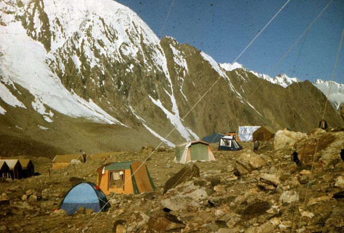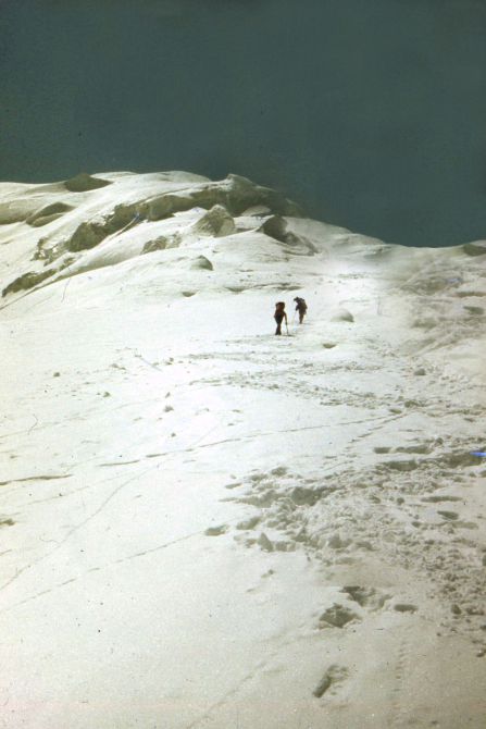 До вершины в тот август мы не дошли. После трёх дней подъёма по маршруту Бородкина, и двух - в ожидании погодного окна в районе вершины п. Душанбе на 6800м начальство нас из-за неблагоприятных прогнозов развернуло вниз. Нам, к счастью, никого не пришлось спасать. И нас никто не спасал. На «Москвина» после ещё четырёх дней томительного ожидания в лагере погодное окно мы всё же «поймали» и сходили «Корженеву» с двумя ночёвками. Общий результат сезона – «два по семь из трёх». Но фотки, по иронии случая, сохранились только эти.