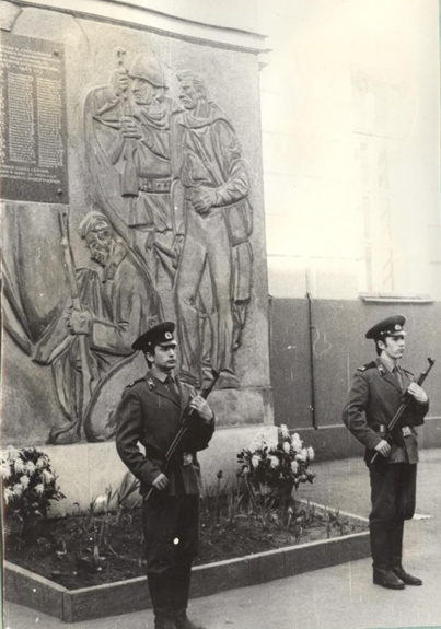 ПОЧЁТНЫЙ КАРАУЛ 9 мая 1981 г. у МЕМОРИАЛЬНОЙ ДОСКИ на здании МГРИ.