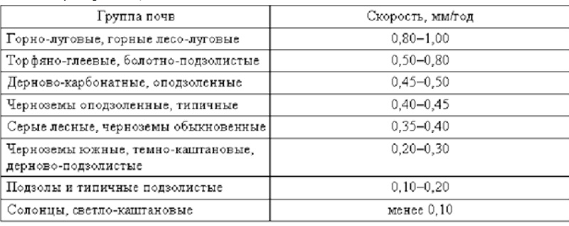 Таблица 1. Скорость формирования гумусового горизонта почв Русской равнины (по А. Н. Геннадиеву и др., 1987)