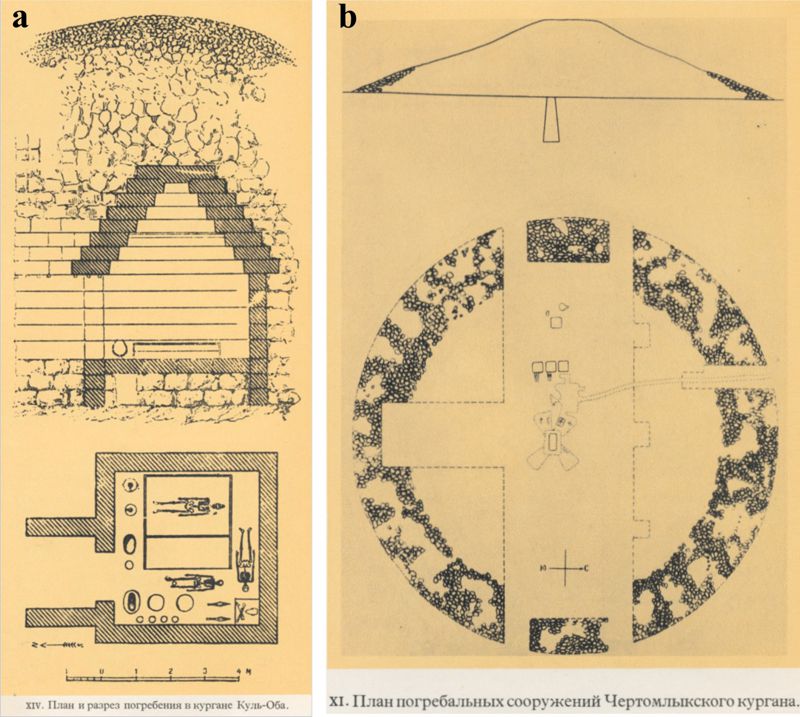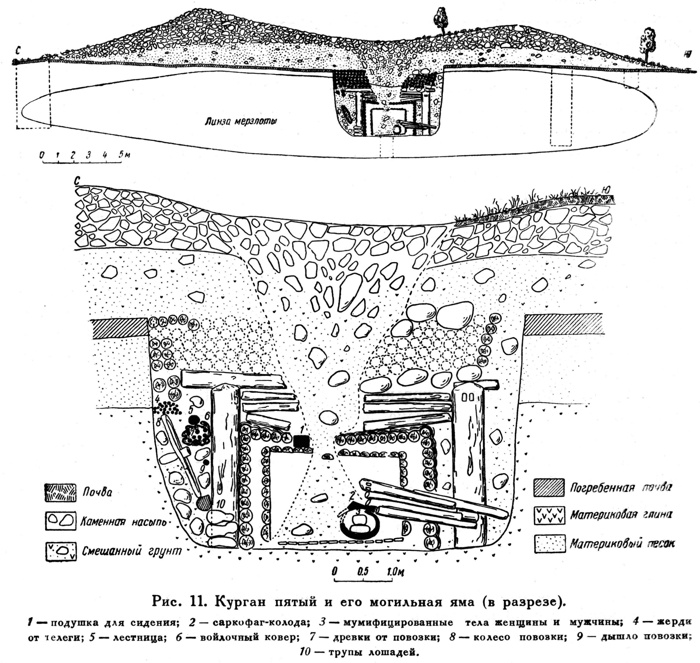 Чтобы иметь представление о внутреннем устройстве курганов, обратимся к работам двух известных археологов, фрагменты из печатных работ которых приведены ниже.