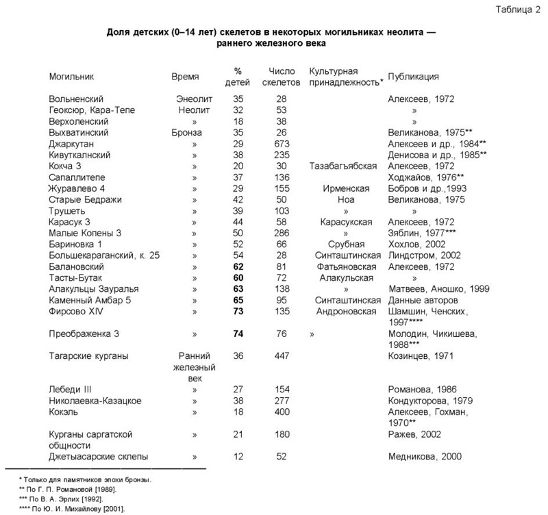 Ражев Д.И., Епимахов А.В. Феномен многочисленности детских погребений в могильниках эпохи бронзы. Вестник Археологии, Антропологии и Этнографии. 2005, № 5, с. 107-113.