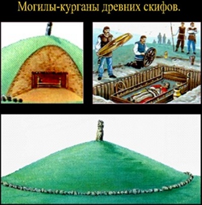 Вот что пишет об устройстве могил в курганах Украины директор Государственного Эрмитажа в 1951-1964 годах М.И. Артамонов (Артамонов, 1974):