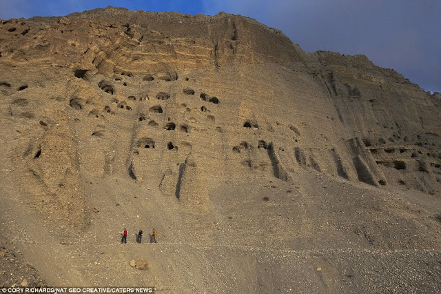 Рис. 33. Древний пещерный город, состоящий из тысяч пещер, высоко в Гималаях, Непал.