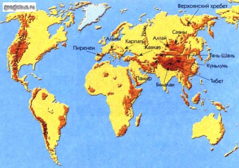 Последний тезис хорошо подтверждают последние данные генетической генеалогии, которая может оказать серьезную помощь в переосмыслении послепотопной истории человечества. В результате катастрофы было мгновенно уничтожено практически всё человечество, а шанс выжить имело лишь незначительное количество людей, главным образом в высокогорных районах. И именно из этих "очагов" должно было происходить возрождение человечества. Даже беглый взгляд на карту распространения современных гаплогруп (Рис. 34) совместно с картой горных массивов мира (Рис. 35), позволяет увидеть закономерности в их распределении. Такое совпадение еще более удивительно, если учесть, что карта создавалась авторами под совсем другую концепцию.