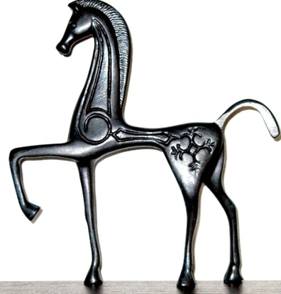 На крупе статуэтки этрусской лошадки VI века до н. э. изображён элемент орнамента, который идентичен рисунку древнерусского орнамента, распространённого издавна от берегов Днепра до Волги.