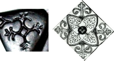 Элемент древнерусского орнамента составной - основной его рисунок "ветвистый крест", аналогичный этрусскому "кресту" и украшен сверху другим ветвистым крестом, стилизованным под дубовые листья.