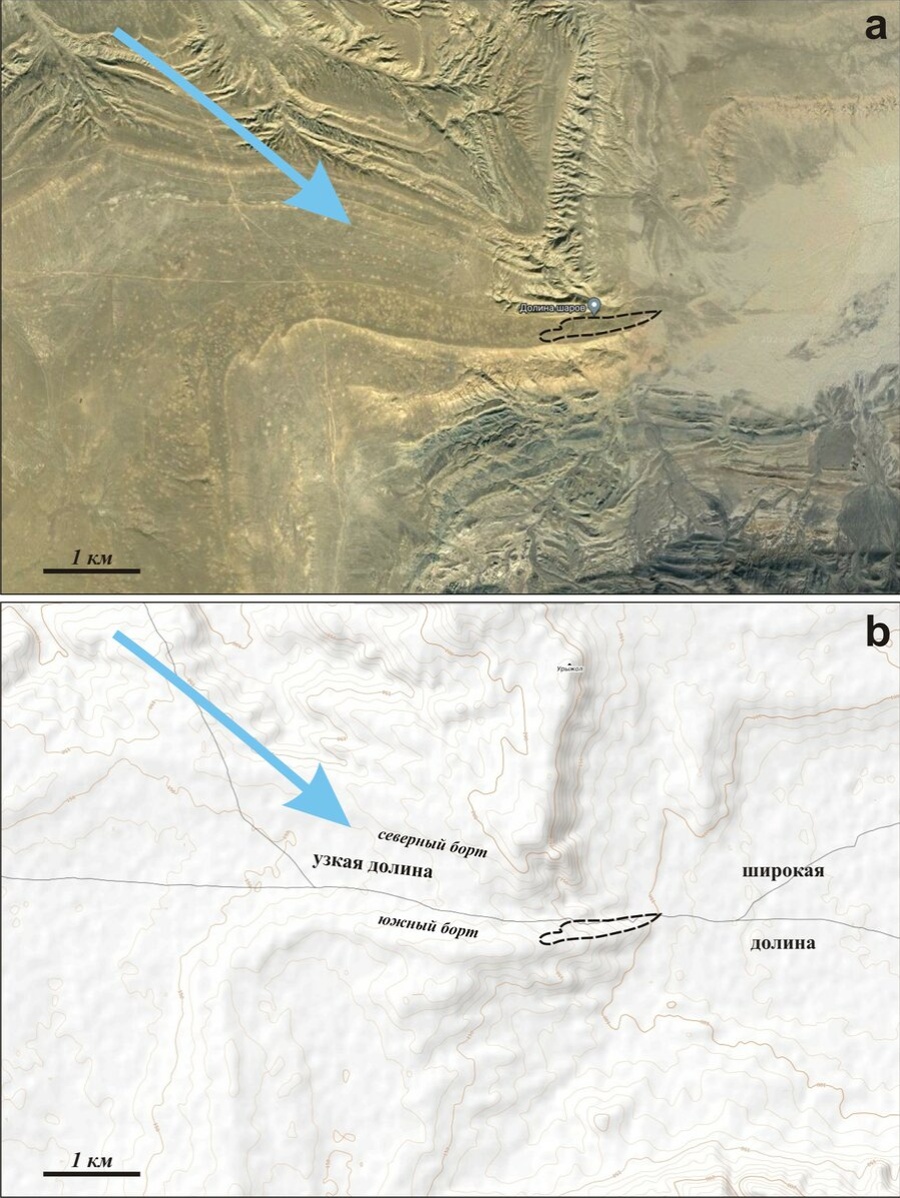 Как видно на топографической карте (Рис. 4b) максимальное скопление шаров приурочено к сужающемуся переходу из более узкой долины в широкую, где скорость водного потока была максимальной и позволяла перемещать огромные шары даже вверх по склону, вплоть до водораздела (Рис. 5, 6). Но как только поток вышел в широкую долину, давление в нём резко упало, поэтому массовое скопление шаров заканчивается острым клином при входе в неё. А в самой долине шаров уже нет.