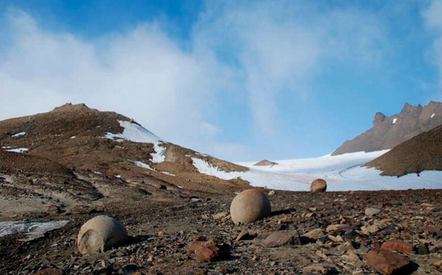 Аналогичным образом можно объяснить появление каменных шаров на острове Чамп, расположенного в центре архипелага Земля Франца-Иосифа в Северном Ледовитом океане.