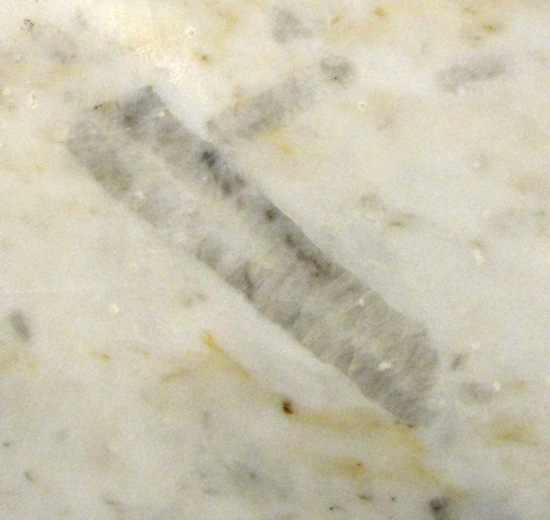 При ближайшем рассмотрении некоторые пятна можно идентифицировать, как фрагменты минерализованных останков древней фауны. К сожалению, я мог изучать поверхности мраморных плит в основном на уровне глаз.