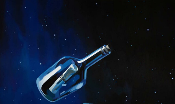 Вот мимо, отражая боками звёздное сияние, неспешно кувыркалась бутылка. Дон Педро не удивляясь, мало ли какой мусор можно встретить на оживлённой трассе, похвалил себя, что заметил такую мелюзгу далеко на подлёте и было отвернулся. Но стоп, намётанный глаз лучшего стрелка лётной академии разглядел внутри бутылки нечто. Он быстро облачился в пилотируемый скафандр с моторчиком и, чертыхаясь, нырнул в зияющую пустоту, стараясь не потерять из виду загадочную находку, пока та окончательно не скрылась где-то там.