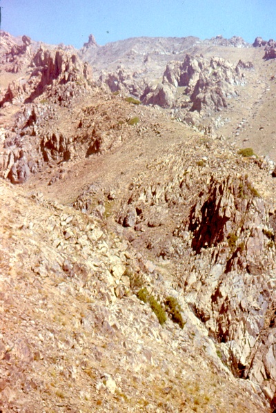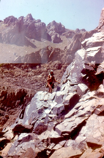 *** На другой день после прибытия в лагерь, главный геолог взял меня с собой в маршрут. Несколько дней я ходил с ним в паре, он доходчиво разъяснял все тонкости горного маршрута, заодно проверяя мои знания. Благодаря "драконовскому" методу обучения на кафедре петрографии, где даже моргнуть лишний раз за микроскопом не разрешалось и великолепным тематическим коллекциям минералов, я чувствовал себя среди скальных нагромождений, как рыба в воде. Первым делом надо было найти на местности геохимическую аномалию, нарисованную на карте, то есть точно выйти на неё. Как правило, это были небольшие участки протяжённостью пару сотен метров. А потом прочелночить площадь снизу вверх в поисках "изменённых" пород с видимой минерализацией. Очень трудоёмкая, да и опасная работа - лазать с молотком по скользким, порой пышущих жаром поверхностям. Весьма помогали в этом деле трикони - приспособления с железными щипами, которые привязывались к подошве туристических ботинок. Потом следовали тривиальные процедуры - прослеживание распространения зоны минерализации, описание вмещающих пород и тектонических нарушений, отбор образцов и проб, и главное - точная привязка выявленного источника минерализации на топооснову. В конце недели главный геолог дал мне в помощники маршрутного рабочего и убыл в Табашар. а я, с его благословения, последующие четыре месяца ходил в самостоятельные маршруты.