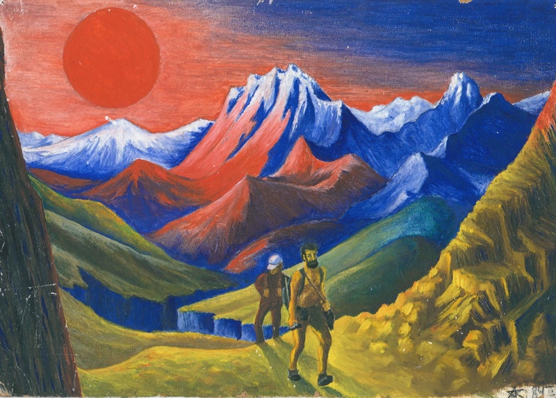 (Картина автора. масло, картон) Как правило, рельеф на высоте был скалистый с крутыми склонами, покрытыми осыпями разнокалиберных по величине обломков пород, и мелких и размером с грузовик.