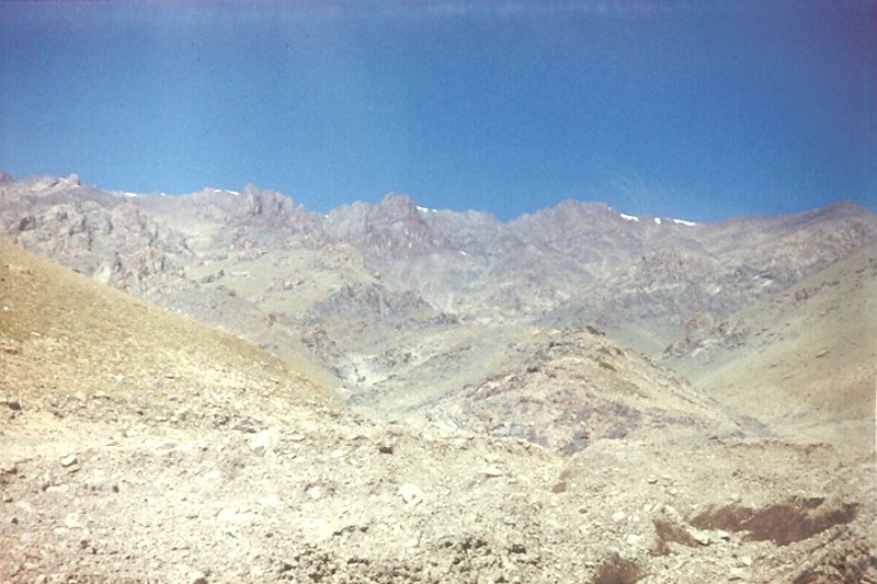 (Фотографии и цветные слайды сделаны авторам фотоаппаратом "Зенит ТТЛ" исключительно в поисковых маршрутах) Летом 1980 годка в Москве прохолодили Олимпийские игры. Слышал, что город тогда основательно "почистили" от необязательных для спортивных мероприятий людей, в том числе и от студентов многочисленных ВУЗов. Нас, студентов МГРИ (геологоразведочного института) и в другие-прочие годы летом в столице было не сыскать - первокурсники проходили учебные практики на полигоне под Загорском (ныне город Сергиев Посад), второкурсники в Крыму под Бахчисараем, старшекурсники разъезжались по Союзу в геологические экспедиции. А по возвращению в "альма-матер" нас всех отправляли недельки на две-три в подмосковные колхозы "на картошку". В то олимпийское лето я распределился на преддипломную практику в Таджикистан в Кайракумскую геологоразведочную экспедицию. По приезду меня спровадили в съёмочную партию, которая базировалась в городке Табашар, куда я с неизбежными перипетиями добрался 20 мая. В конторе меня сразу оформили техником-геологом в поисковый отряд, который занимался заверкой геохимических аномалий в горах Карамазар - одном из хребтов Серединного Тянь-Шаня.
