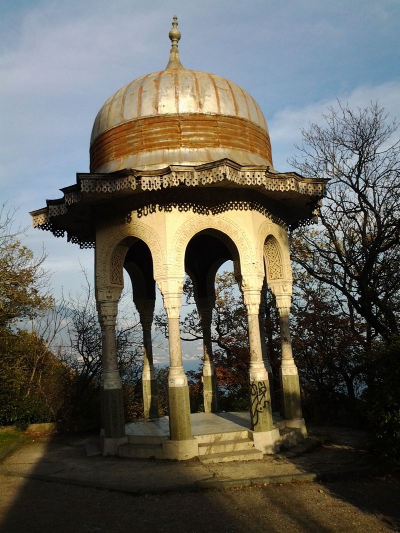 Изящная Турецкая беседка выполнена в восточном стиле, колоны украшены характерным орнаментом, расположена в восточной части парка на отвесной скале. По преданию в этой беседке царица потеряла свое кольцо. Когда-то она имела серебристый купол, отчего получила другое название - Серебряная.