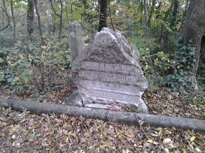 Один, из наиболее сохранившихся реперов на тропе, остальные почти совсем разрушены.