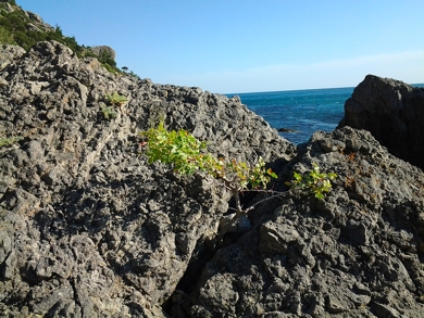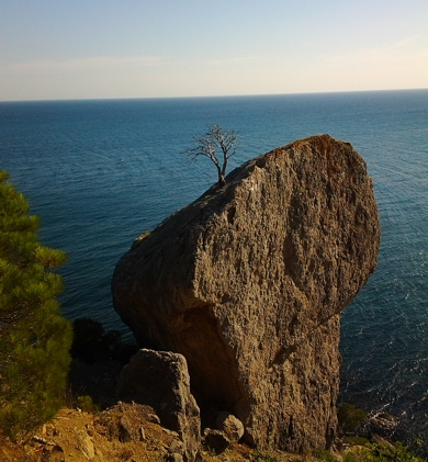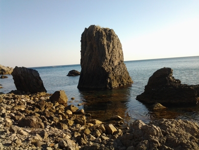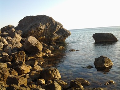 Распорядок моего дня был идеален - до обеда и после пяти вечера, плавал среди скал, иногда с маской. Солнце, кстати, пекло так, что уже часов в 11 дня, невозможно было ступать босиком на раскалённые камни и песок. А вечером сидя на веранде второго этажа, любовался морем и размышлял о красотах горы Караул Оба, попивая при этом красное винцо.