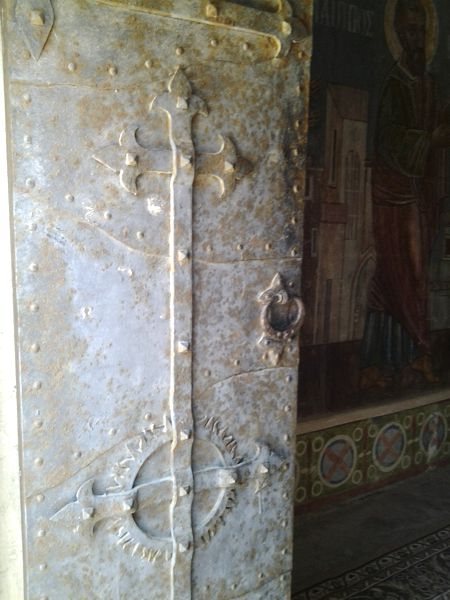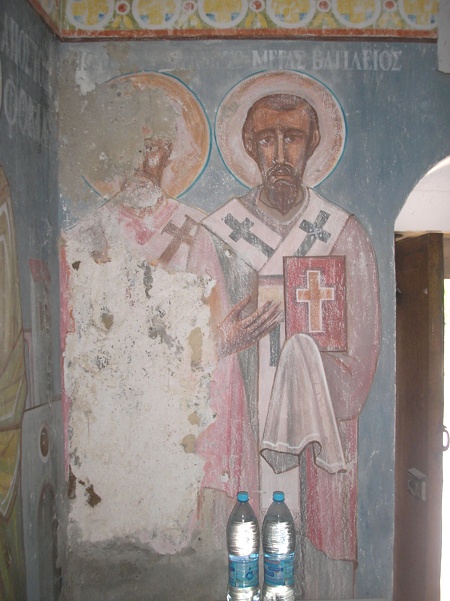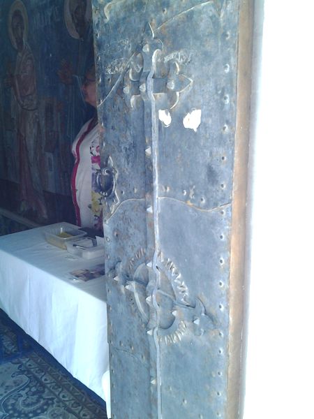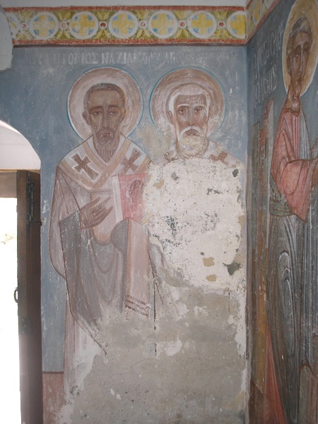 На стенах слева и справа от двери сохранились мельчайшие фрагменты древней фрески