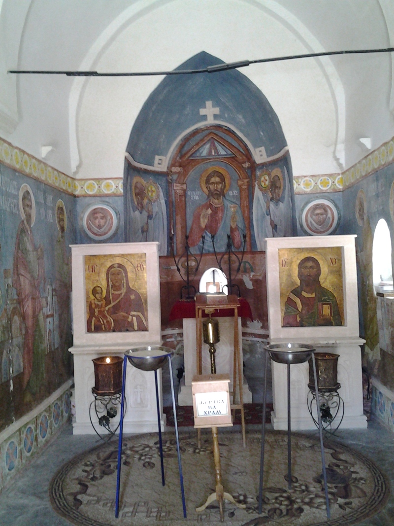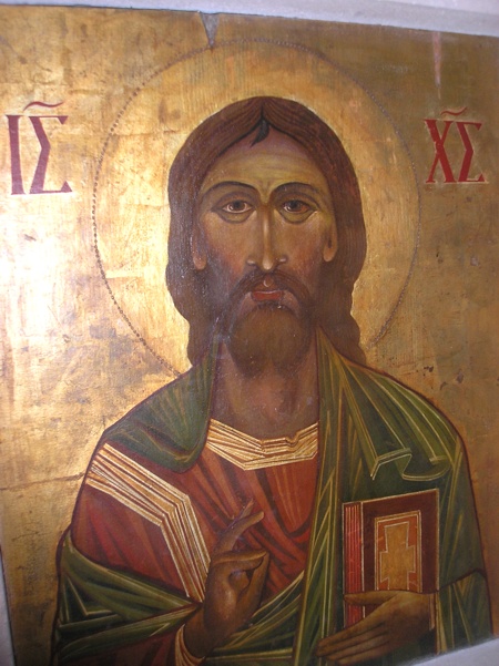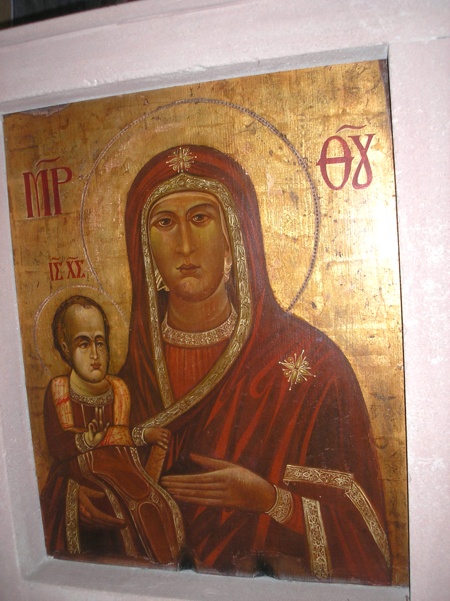 Иконы перед алтарём, списки с византийских икон - Божьей Материи и Спасителя: