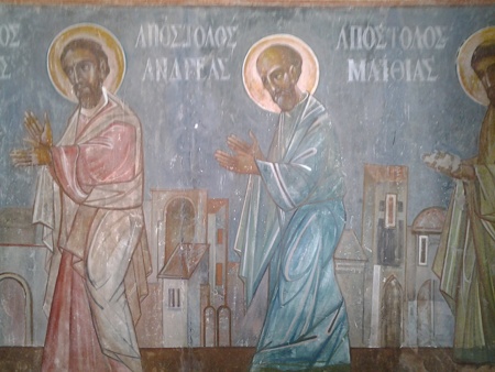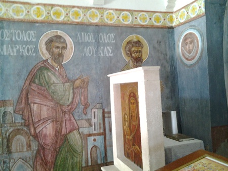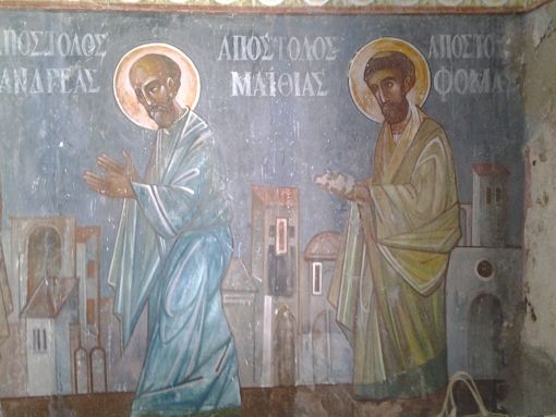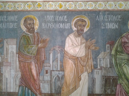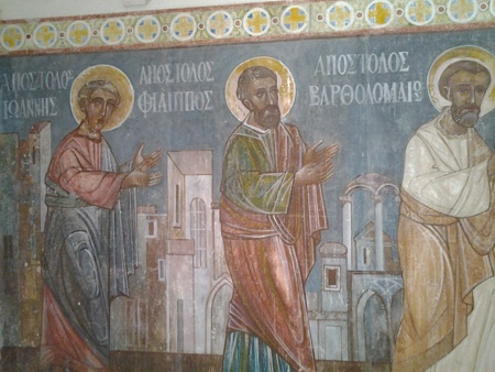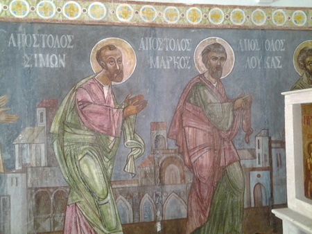 Фрески апостолов на стенах Храма идущих от входа к алтарю :