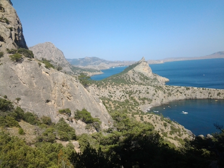 ГЕНУЭЗСКАЯ КРЕПОСТЬ, ОТВЕТСНЫЕ СКАЛЫ И ДРУГИЕ ПРЕЛЕСТИ ГОРОДА СУДАК НА БЕРЕГУ ЮГО-ВОСТОЧНОГО КРЫМА часть 7. ПОХОД ИЗ ПОСЁЛКА НОВЫЙ СВЕТ В КУТЛАКСКУЮ БУХТУ ЧЕРЕЗ ПЕРЕВАЛ ГОРЫ КАРАУЛ-ОБА.Поход по тропе через перевал между скалами пика Космоса и вершиной горы Караул-Оба в знакомую уже мне Кутлакскую бухту я оставил на "десерт". В 2015 году я провёл замечательных три недели в той прекрасной бухте, и даже составил об этом записки о развалинах древней крепости, которые тогда дотошно обследовал.