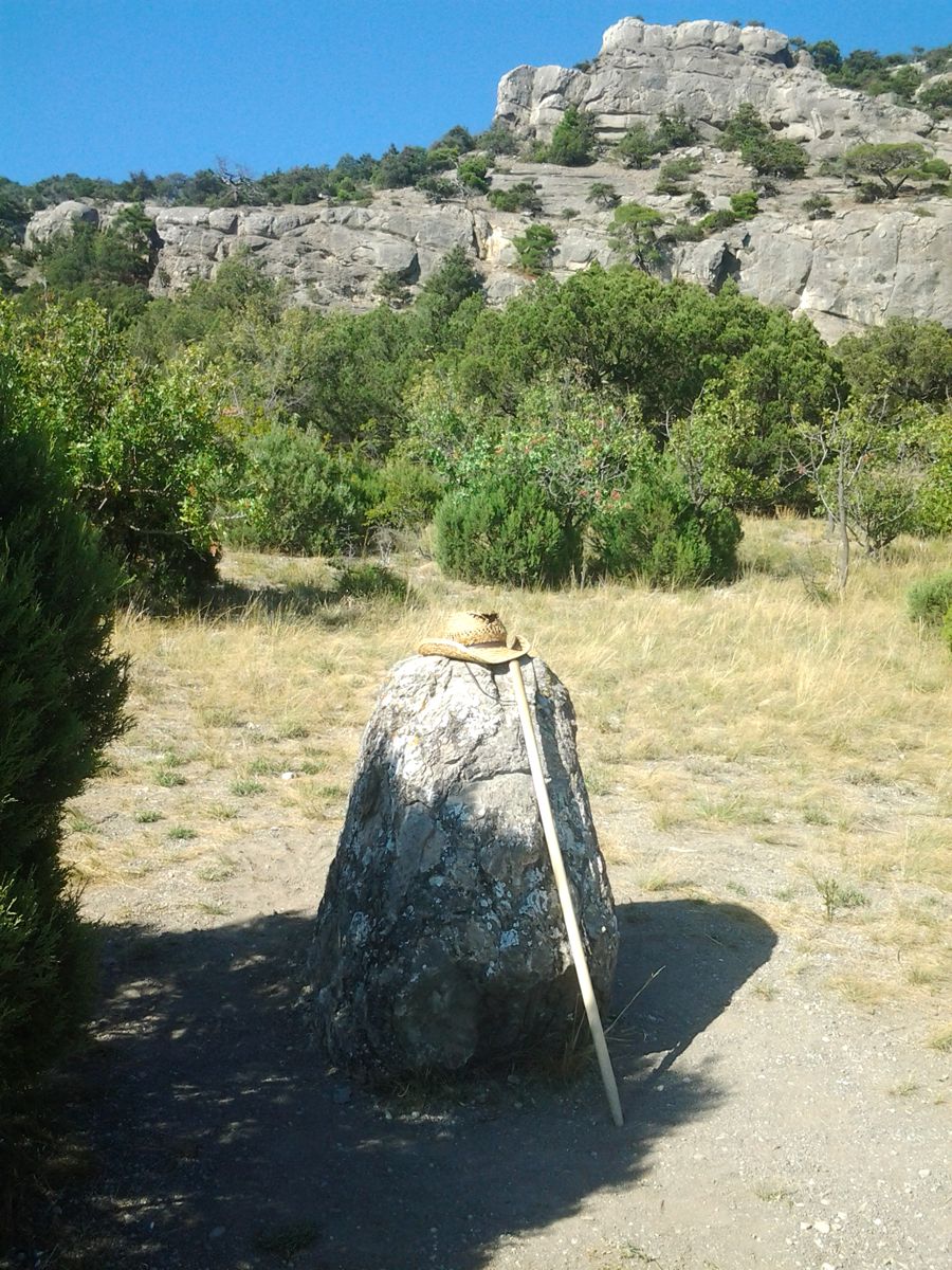 Но всё тяжёлое рано или поздно заканчивается. Как-то неожиданно перед глазами открылась просторное, после ущелий, ровное пространство Долины Рая, залитое солнечным светом. В этом месте действительно ощущалась солнечная энергетика, или это было блаженство отдохновения после трудного подъёма? В центре небольшой долины среди кустов можжевельника стоял, словно репер вертикальный обломок скалы.