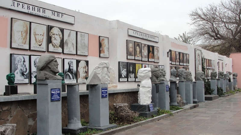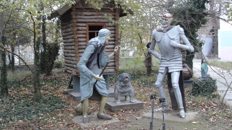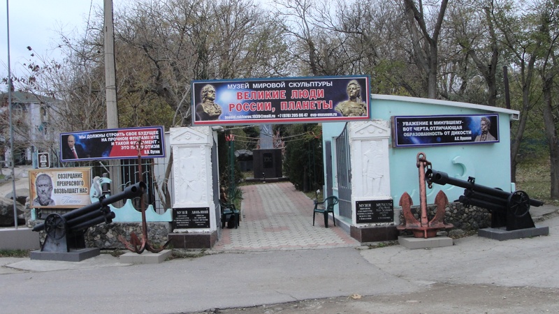 На входе никого не было, но ворота были нараспашку, естественно зашёл и попал в небольшой парк, уставленный скульптурами различной тематики.