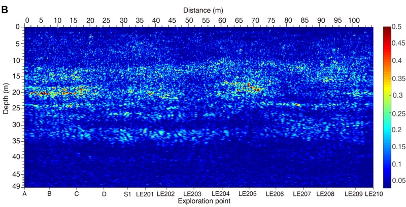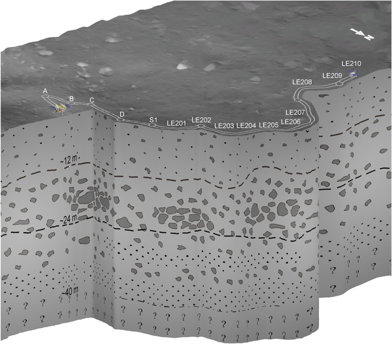 Китайские товарищи провели интерпретацию данных радара и построили литологический разрез подповерхностной толщи кратера: