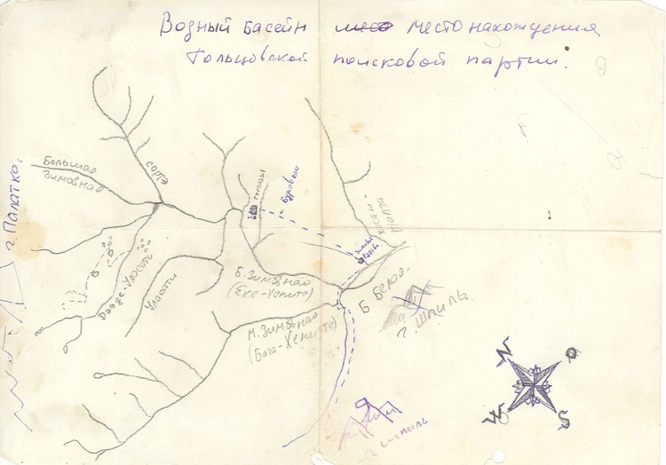Внизу посёлка у подножья почти отвесного склона вилась речка Большая Зимовная, служившая зимой дорогой для снабжения. Летом связь с внешним миром поддерживалась только вертолётом. Партия вела поиски тантал-ниобий-цезевых пегматитов, было несколько буровых, и, в добавок, ещё проходили штольню.