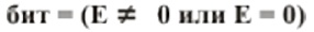 Функциональное назначение электрической вычислительной машины является работа с информацией в виде энергетических импульсов, которые генерирует источник информации. Дальше сигнал передаётся посредством среды передачи в приёмник. Приёмник обрабатывает или хранит полученный сигнал в неизменном виде. Следовательно, информацию, как любую физическую составляющую материального мира можно количественно охарактеризовать, то есть - измерить. Единицей измерения информации является минимальное количество данных доступное для передачи-приёма-хранения. В бытовом понимании самым кратким ответом на поставленный вопрос является однозначное утверждение "ДА", или же его полное отрицание "НЕТ". В бинарной математике, эти два взаимоисключающих друг друга ответа кодируются соответственно двумя цифрами: "1" или "0". Технически информационный посыл реализуется подачей или неподачей электрического заряда Е (сигнала) на соответствующий приёмник - ячейку. Образно говоря, исправная лампочка на потолке с выключателем на стене может находиться только в двух состояниях: или гореть, или не гореть. Принято минимальное количество информации называть "битом" (bit - binary digit, перевод - двоичная цифра): бит = (1 или 0) Двоичная система исчисления являться основой работы всех ЭВМ, электронный "мозг" которых состоит из множества ячеек, на которые подается или убирается электрический заряд (один бит информации):