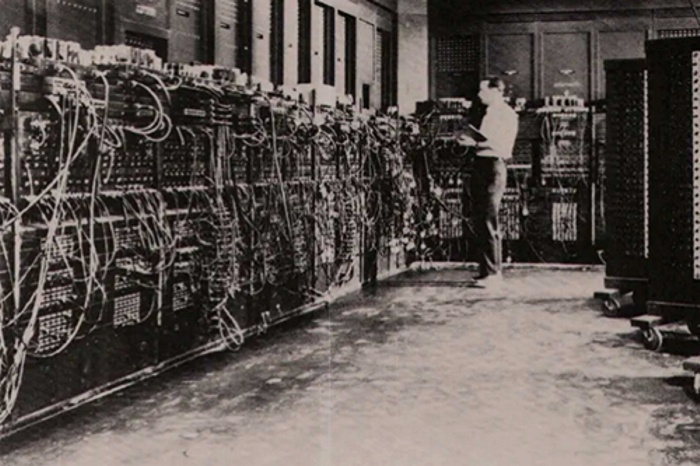 Первая универсальная электронная цифровая вычислительная машина была запушена компанией ENIAC (США) 14 февраля 1946 года. Это было огромное устройство, занимавшее целые комнаты и требовавшее большое количество обслуживаемого персонала. Весил этот аппарат 30 тонн и содержал в себе около 18 000 электронных ламп. Скорость операций, которые он мог совершать, составляла 5 000 в секунду. Разработка ее велась с 1943 года под грифом "Секретно". В общей сумме он проработал около 9 лет.