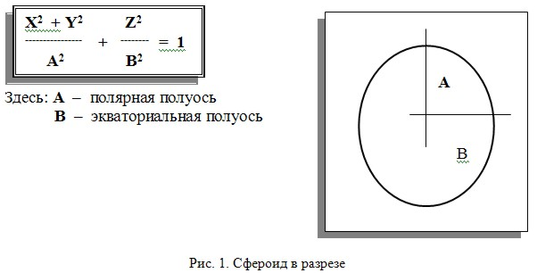 Обе эти две фигуры являются частными случаями сфероида, он же двуосный эллипсоид (см. рис.1), и описываются одним математическим уравнением [4]. Различаются эти фигуры лишь тем, что геоид слегка сплющен по полярной полуоси, а яйцоид слегка вытянут в том же направлении.