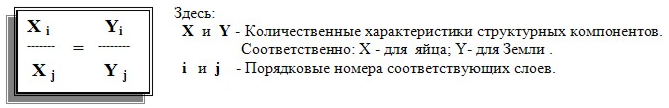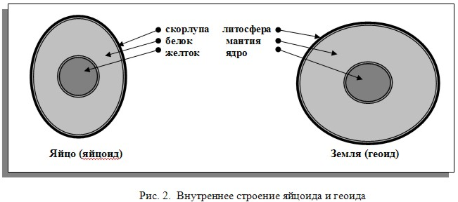 Внутренние строение планеты Земля и внутренние строение любого яйца имеют одинаково слоистую структуру с полной идентификацией всех структурных элементов, как по количеству компонентов и их относительным размерам, так и по качественным характеристикам веществ, образующих эти слои (см. рис.2).