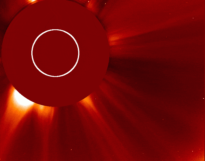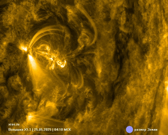 ВИДЕО: Вспышка 15 июня 2025 года Смотреть видео в отдельном окне Хорошо видно формирование гигантского плазменного "пузыря", стенки которого образованы улетающей с Солнца плазмой, выброшенной из центра вспышки силой взрыва. Видимое направление выброса (по диагонали вверх) пока сохраняет для Земли шансы избежать встречи с плазменным облаком, даже несмотря на то, что взрыв произошёл почти точно на линии Солнце-Земля. БОНУС (+ Июль месяц):